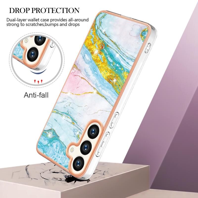 Θήκη τηλεφώνου για Samsung Galaxy S24 5G με ηλεκτρολυτική μαρμάρινη όψη IMD διπλής όψης (Χρυσό Ρόδι 005)