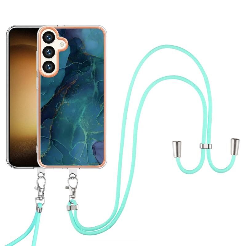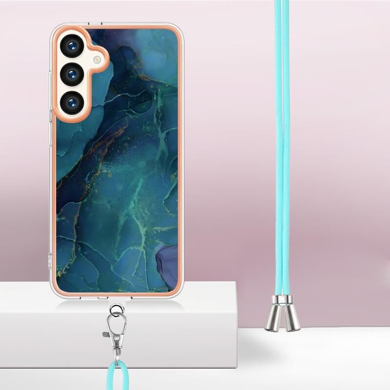 Θήκη τηλεφώνου Samsung Galaxy S24 5G με ηλεκτρολυτική μαρμάρινη επένδυση IMD διπλής όψης με κορδόνι (Πράσινο 017)