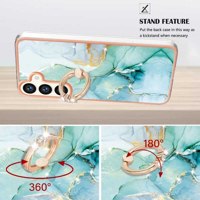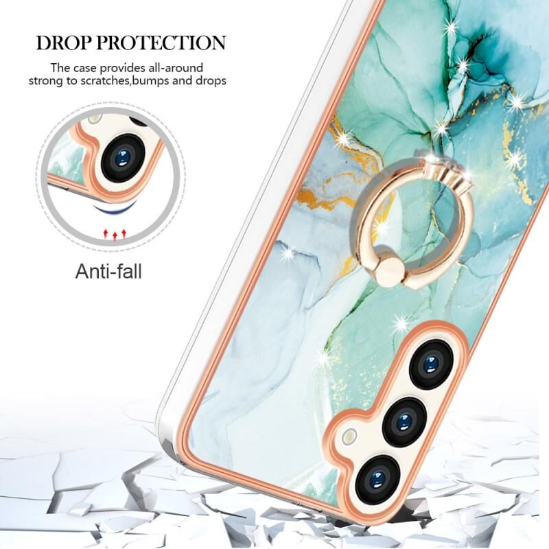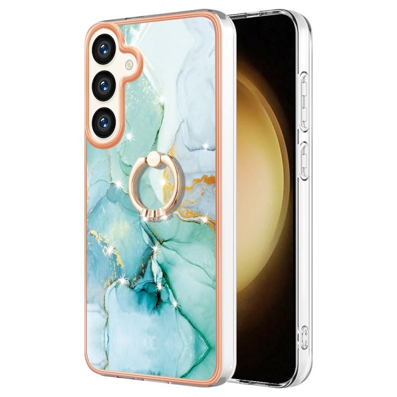 Θήκη κινητού τηλεφώνου Samsung Galaxy S24 5G με Ηλεκτρολυτική Επικάλυψη, σχέδιο Μάρμαρου IMD, από TPU με Δακτύλιο Στήριξης (Λευκό 006)