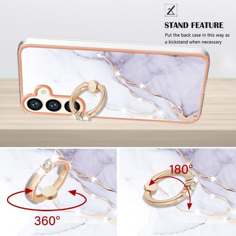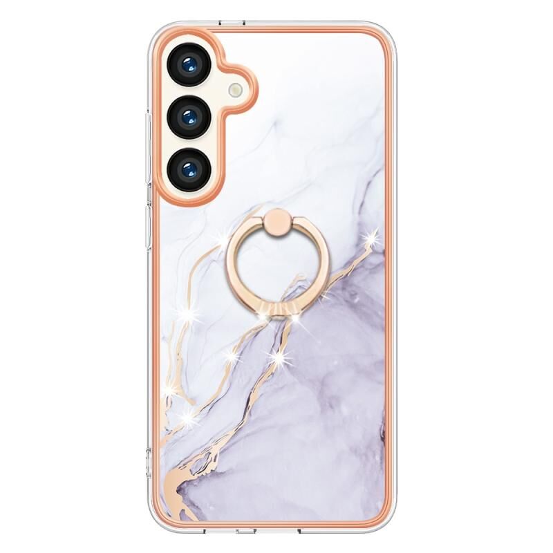 Θήκη κινητού τηλεφώνου Samsung Galaxy S24 5G με Ηλεκτρολυτική Επικάλυψη, σχέδιο Μάρμαρου IMD, από TPU με Δακτύλιο Στήριξης (Λευκό 006)
