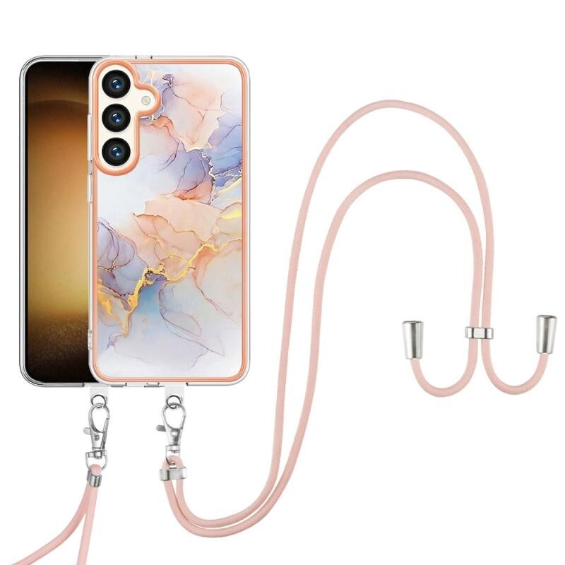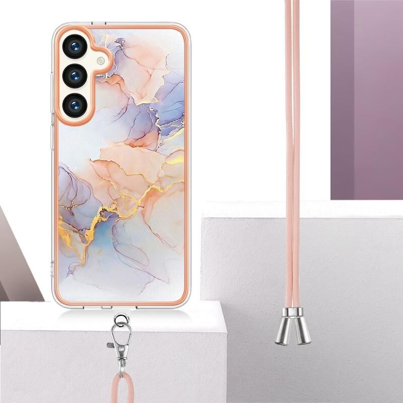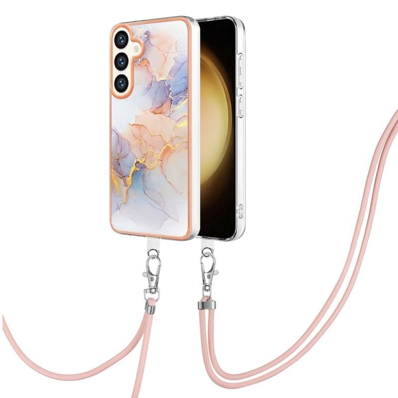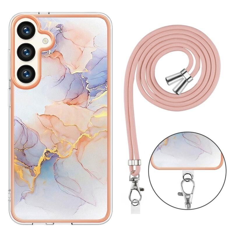 Για το Samsung Galaxy S24 5G Electroplating Pattern IMD TPU Shockproof Case με λαιμό Lanyard (Milky Way White Marble)