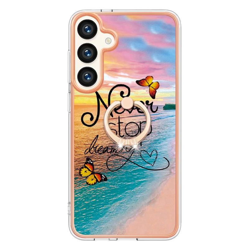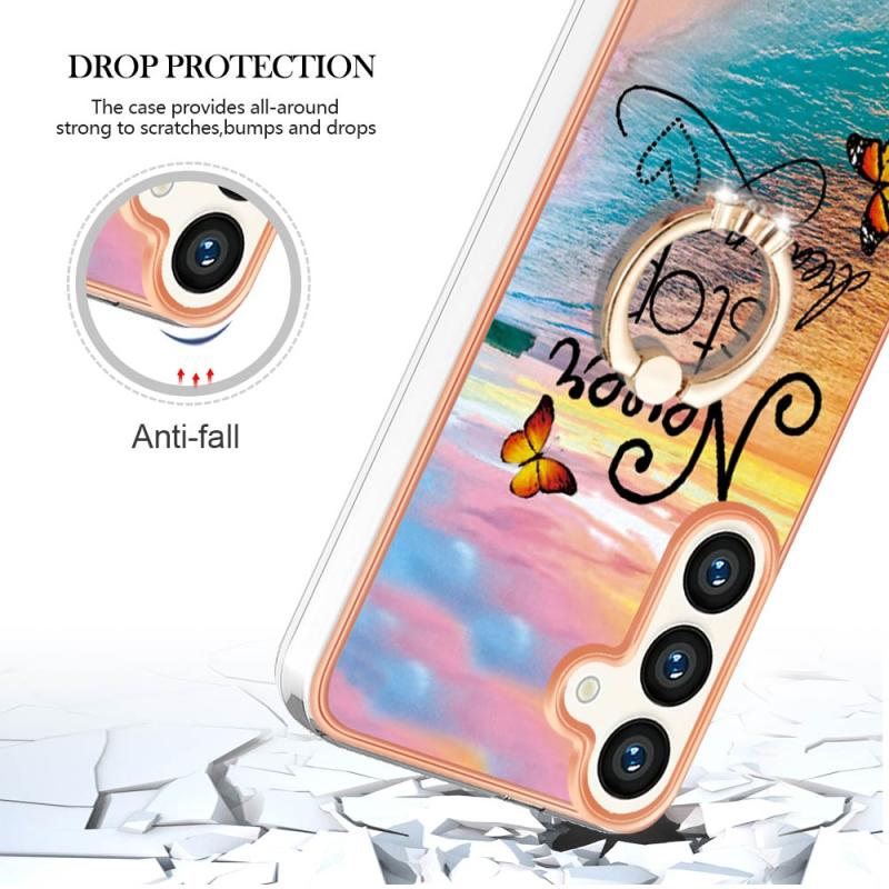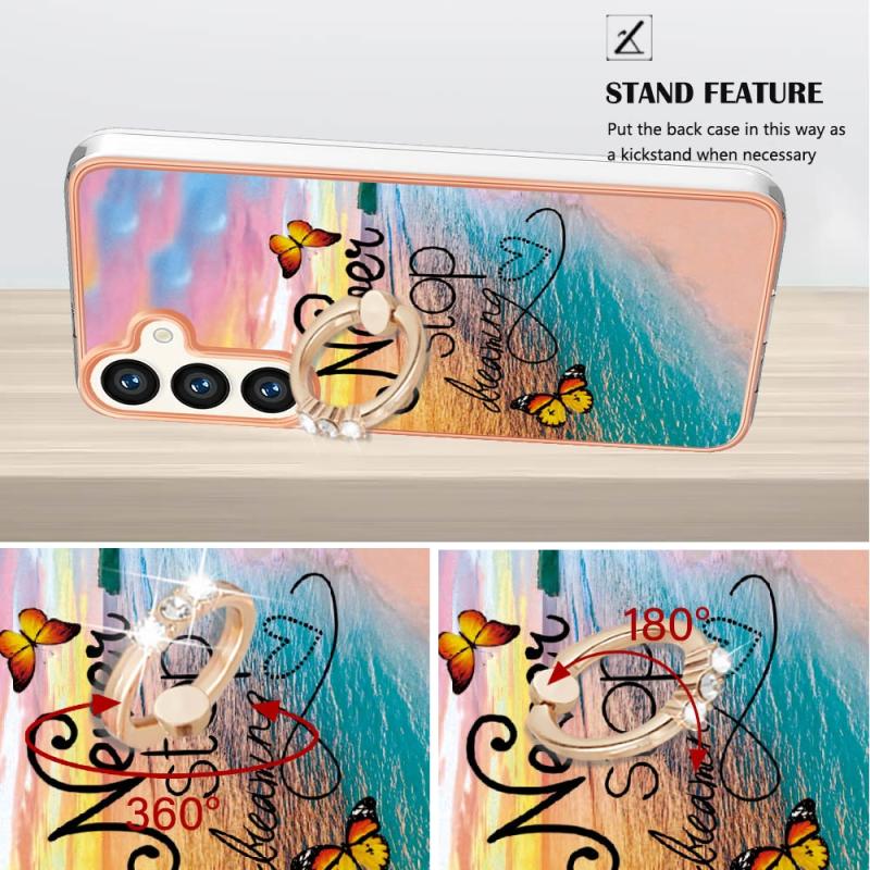 For Samsung Galaxy S24 5G Electroplating Pattern IMD TPU Shockproof Case with Rhinestone Ring Holder(Dream Chasing Butterfly)