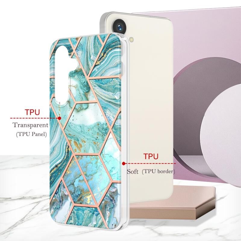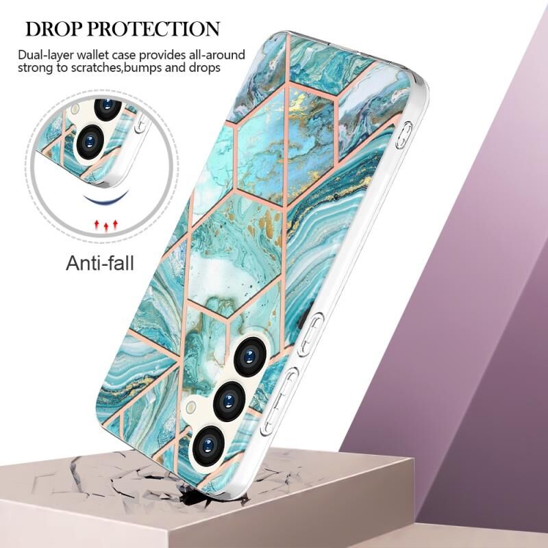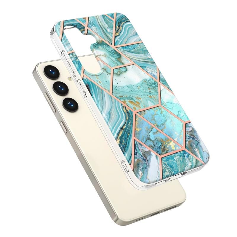 Θήκη κινητού τηλεφώνου Samsung Galaxy S24 5G με γαλβανισμό, συνδυασμό μαρμάρου και TPU (Μπλε)