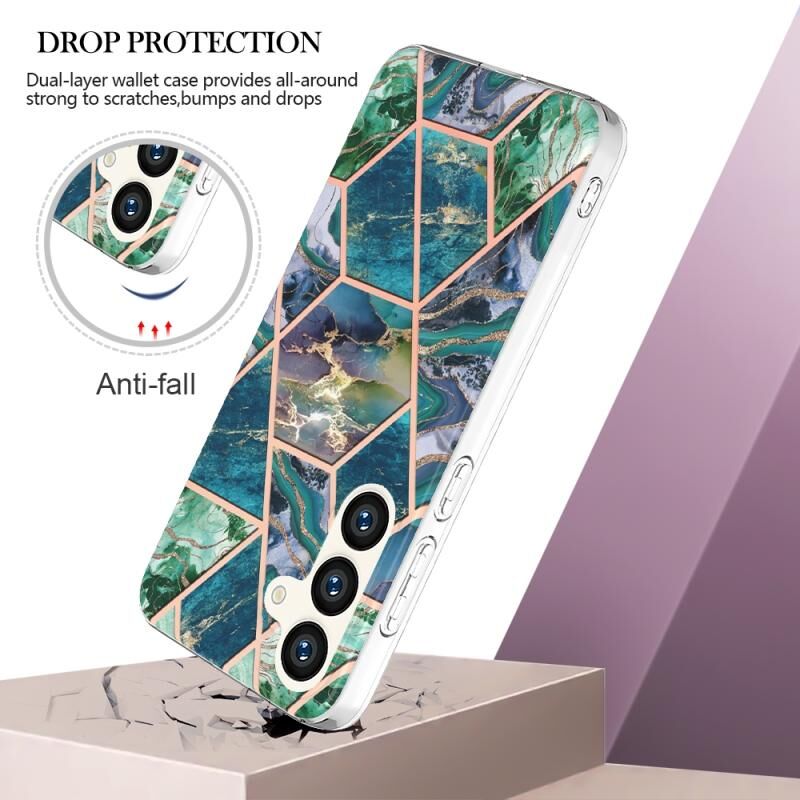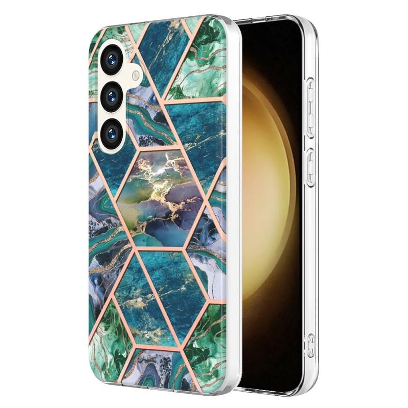 Θήκη κινητού τηλεφώνου Samsung Galaxy S24 5G με γαλβανισμό, συνδυασμό μαρμάρου και TPU (Μπλε)