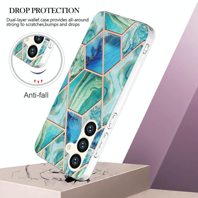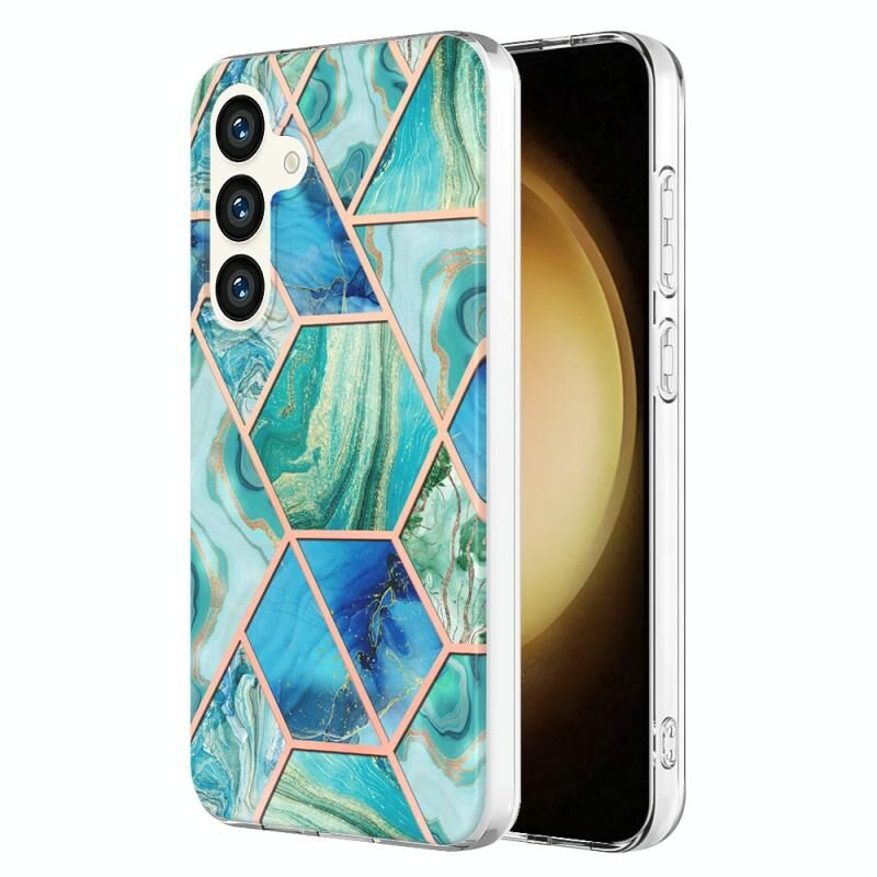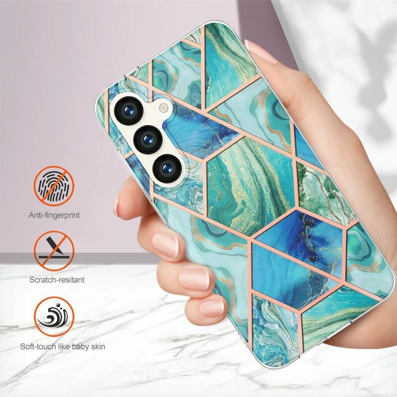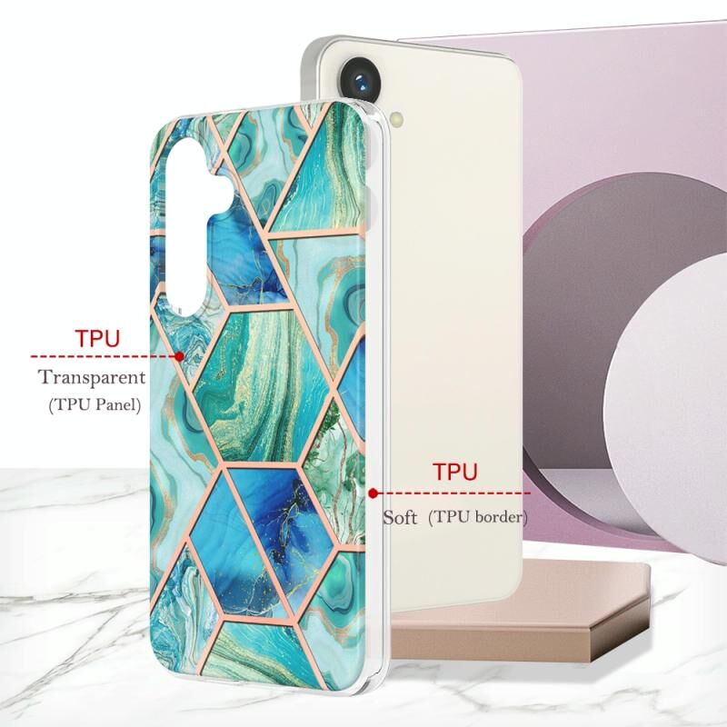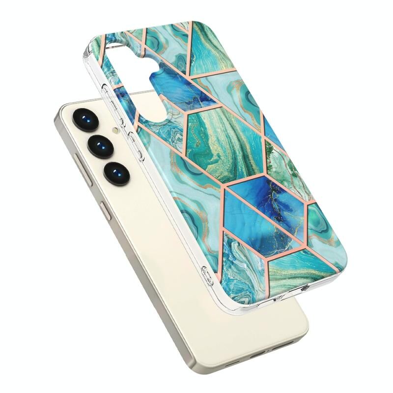 Θήκη κινητού τηλεφώνου Samsung Galaxy S24 5G με γαλβανισμό, συνδυασμό μαρμάρου και TPU (Μπλε)