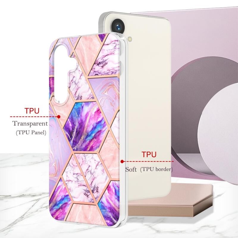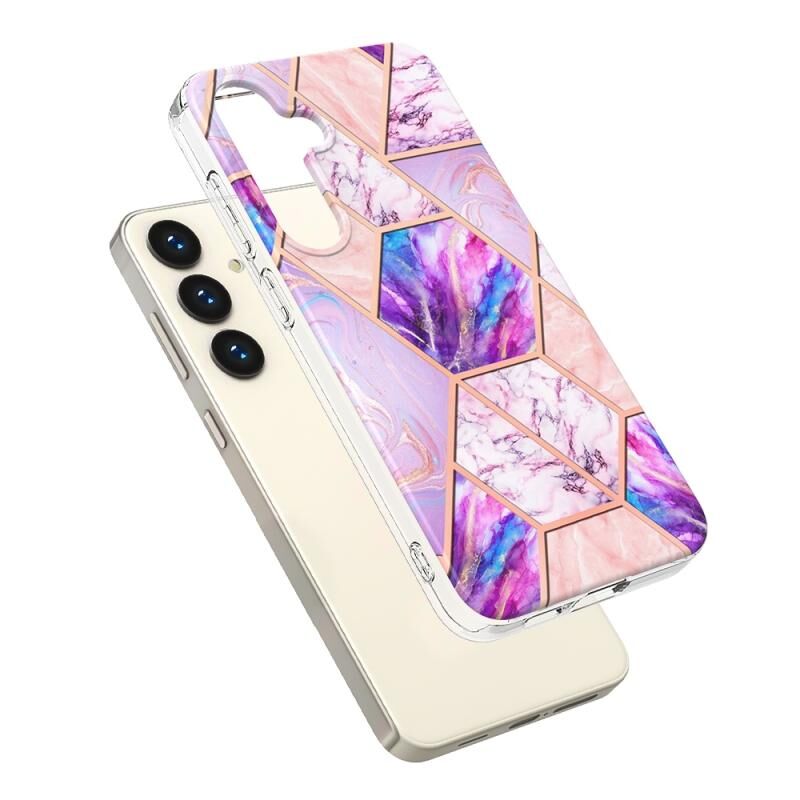 Θήκη κινητού τηλεφώνου Samsung Galaxy S24 5G με γαλβανισμό, συνδυασμό μαρμάρου και TPU (Μπλε)