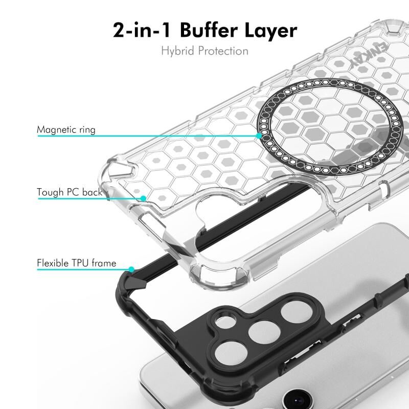 2. Θήκη τηλεφώνου TPU+PC με μαγνητικό εξαγωνικό σχέδιο: Κατασκευασμένη από συνδυασμό υλικών TPU και PC, αυτή η θήκη παρέχει την τέλεια ισορροπία μεταξύ απαλότητας και σκληρότητας, εξασφαλίζοντας βέλτιστη προστασία για το τηλέφωνό σας
