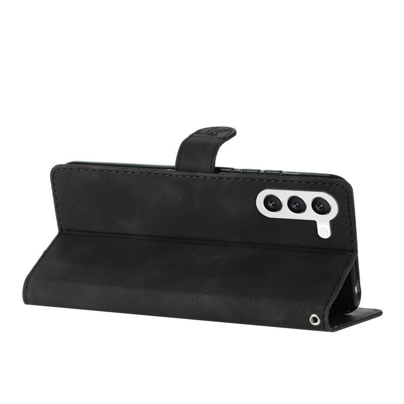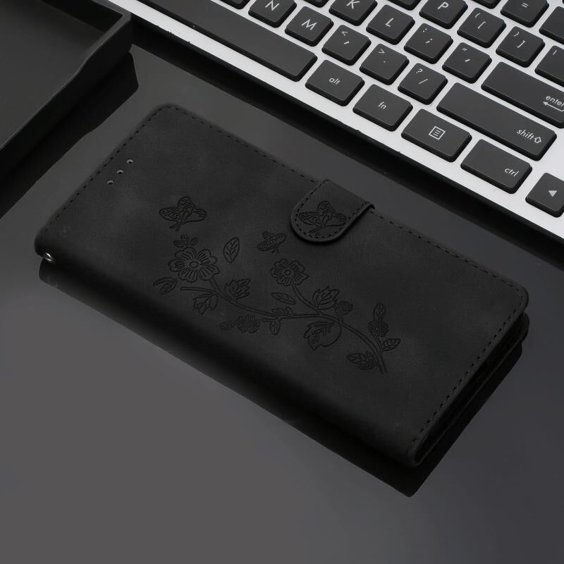 Για Samsung Galaxy S24 + 5G λουλούδι πεταλούδα ανάγλυφο μοτίβο δερμάτινη θήκη τηλεφώνου (μαύρο)