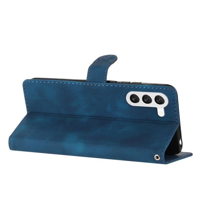 Για Samsung Galaxy S24 5G λουλούδι πεταλούδα ανάγλυφο μοτίβο δερμάτινη θήκη τηλεφώνου (μπλε)