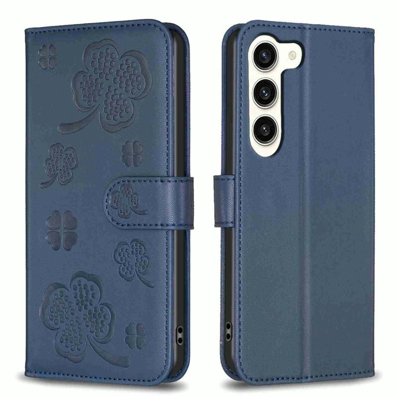 Για Samsung Galaxy S24+ 5G τετράφυλλο ανάγλυφη δερμάτινη θήκη τηλεφώνου (μπλε)