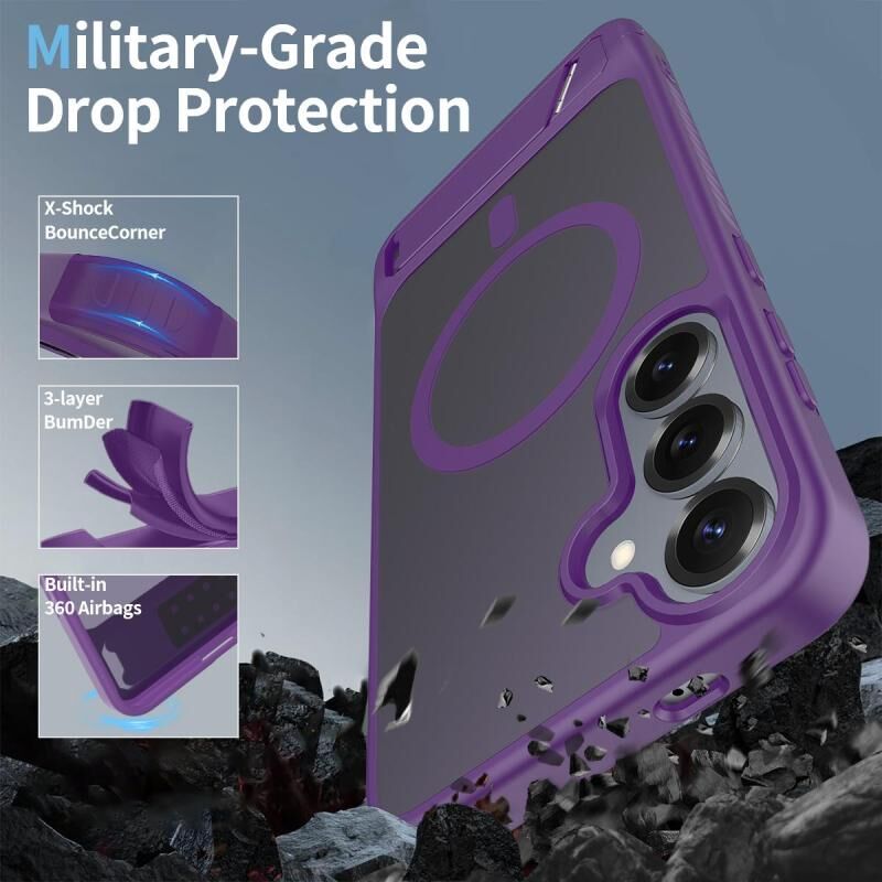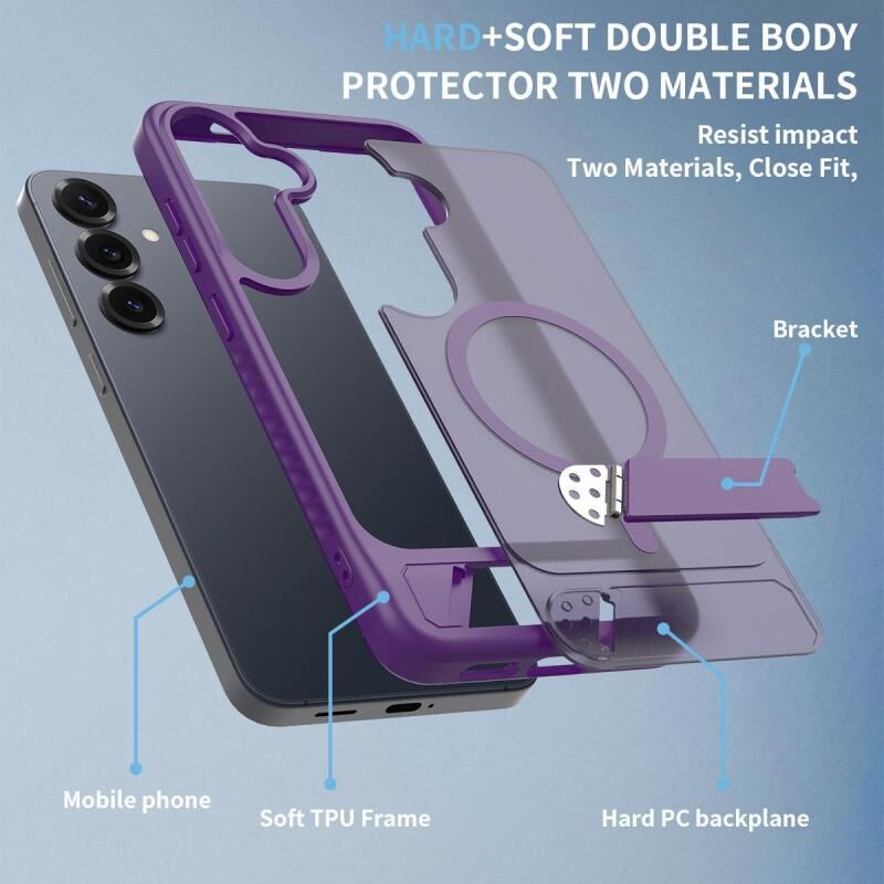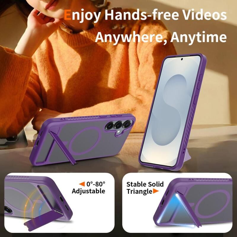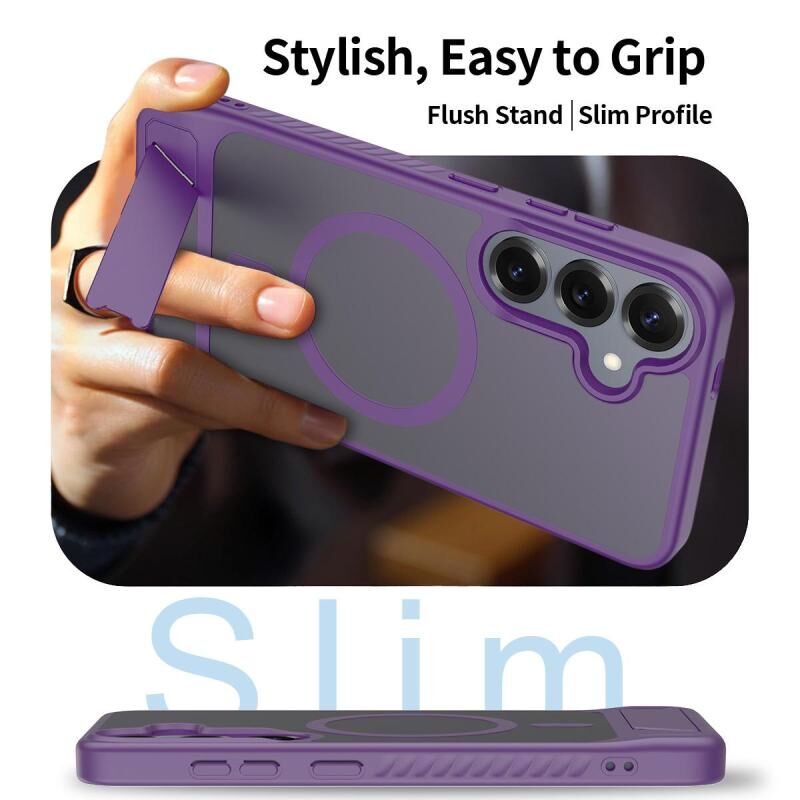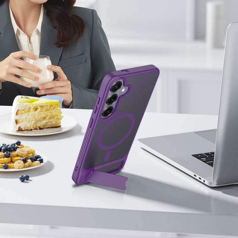 For Samsung Galaxy S24+ 5G Frosted Holder PC Hybrid TPU MagSafe Phone Case(Purple)