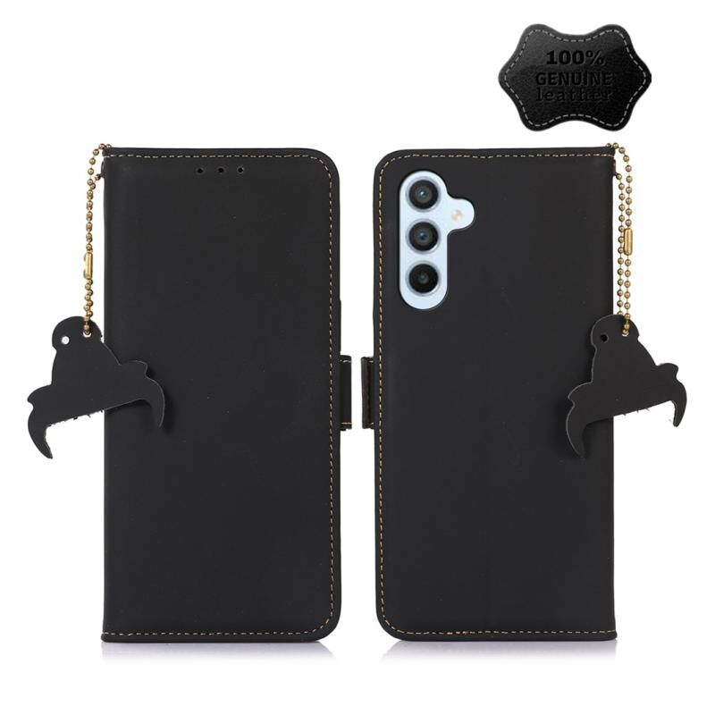 Θήκη τηλεφώνου Samsung Galaxy S24 5G από γνήσιο δέρμα με μαγνητικό κλείσιμο και προστασία RFID (Μαύρο)