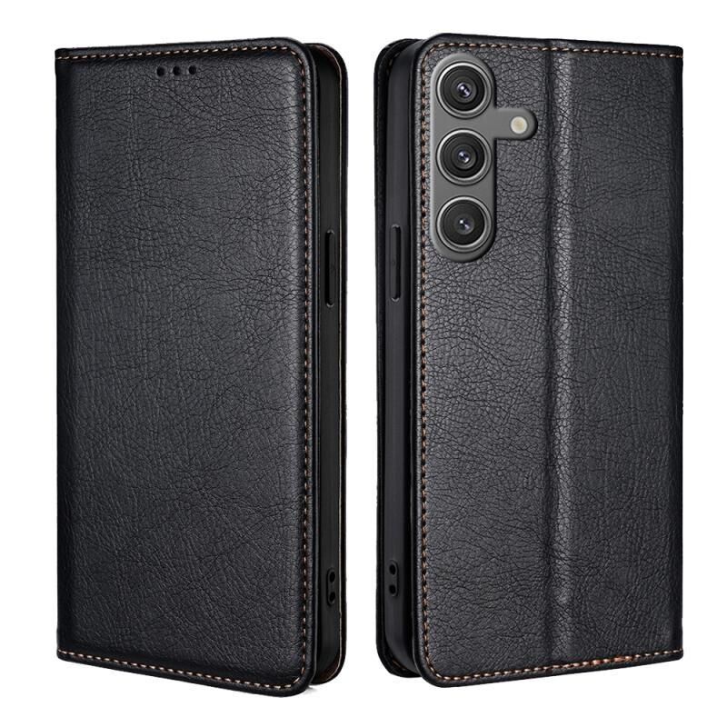 Για Samsung Galaxy S24 5G Gloss Oil Solid Color Μαγνητική δερμάτινη θήκη τηλεφώνου (μαύρο)