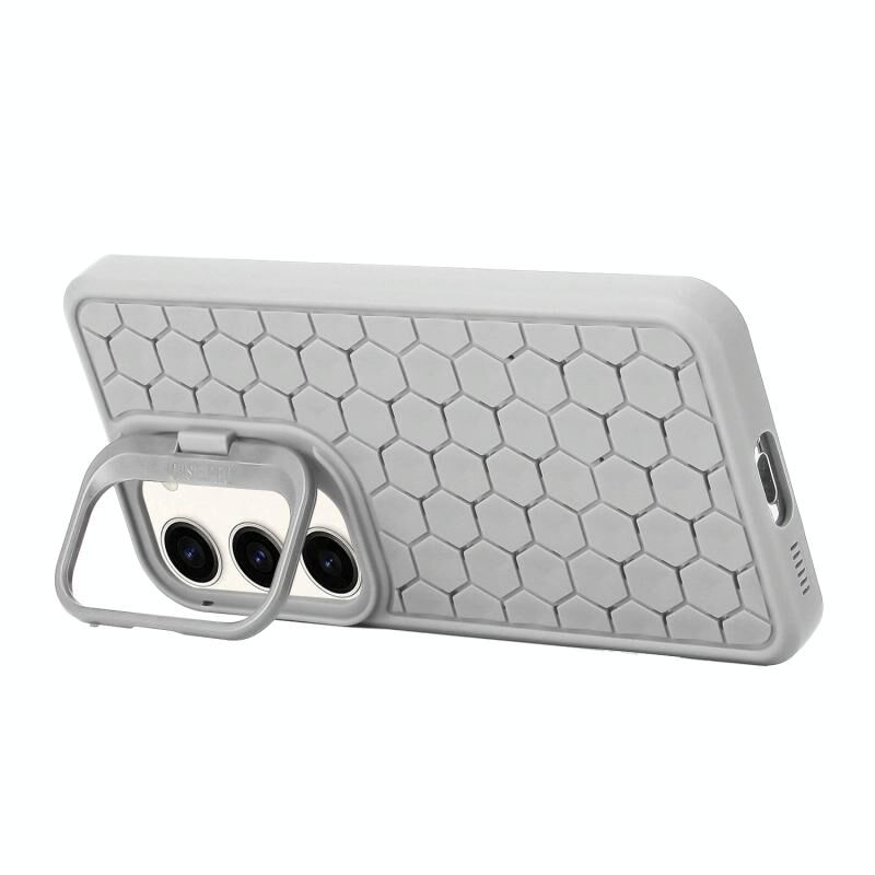 Για Samsung Galaxy S24 5G κηρήθρα ακτινοβολία κάτοχος TPU τηλέφωνο υπόθεση με κορδόνι (γκρι)