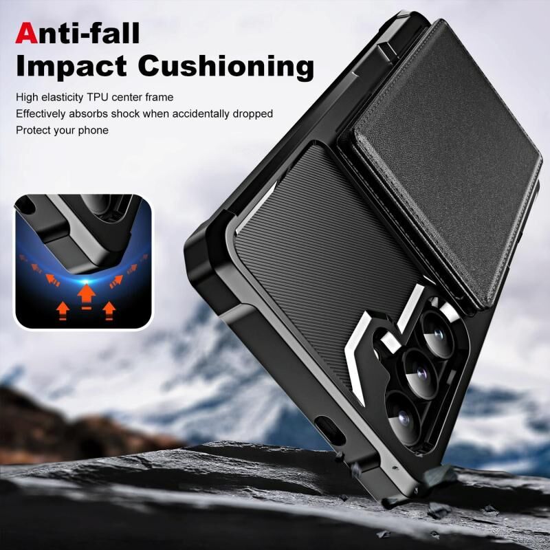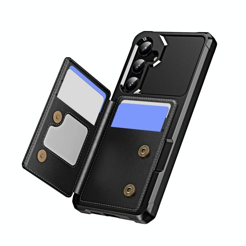 Θήκη τηλεφώνου Samsung Galaxy S24+ 5G, οριζόντια, τύπου πορτοφολιού, από δέρμα (Μαύρο)