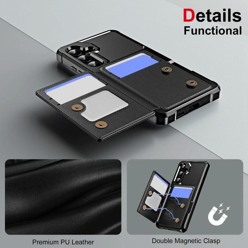 4. Μαγνητικό Κλείσιμο: Το ισχυρό μεταλλικό μαγνητικό κούμπωμα εξασφαλίζει την ασφάλεια των καρτών (πιστωτικών / χρεωστικών / ταυτότητας) και των χρημάτων σας.
