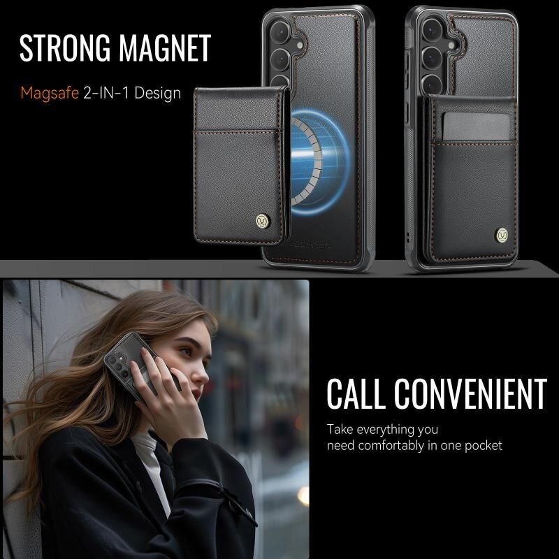 Για Samsung Galaxy S24 5G JEEHOOD J06 Βρετανικού Στυλ Θήκη Κάρτας RFID MagSafe από PU (Μωβ) (JEEHOOD)