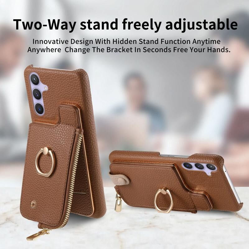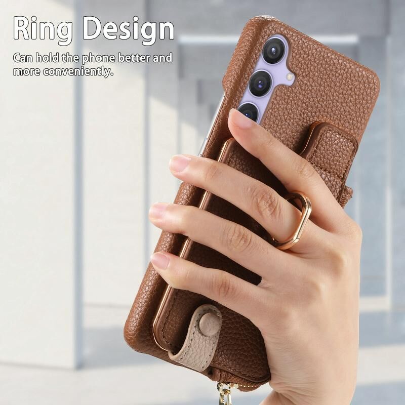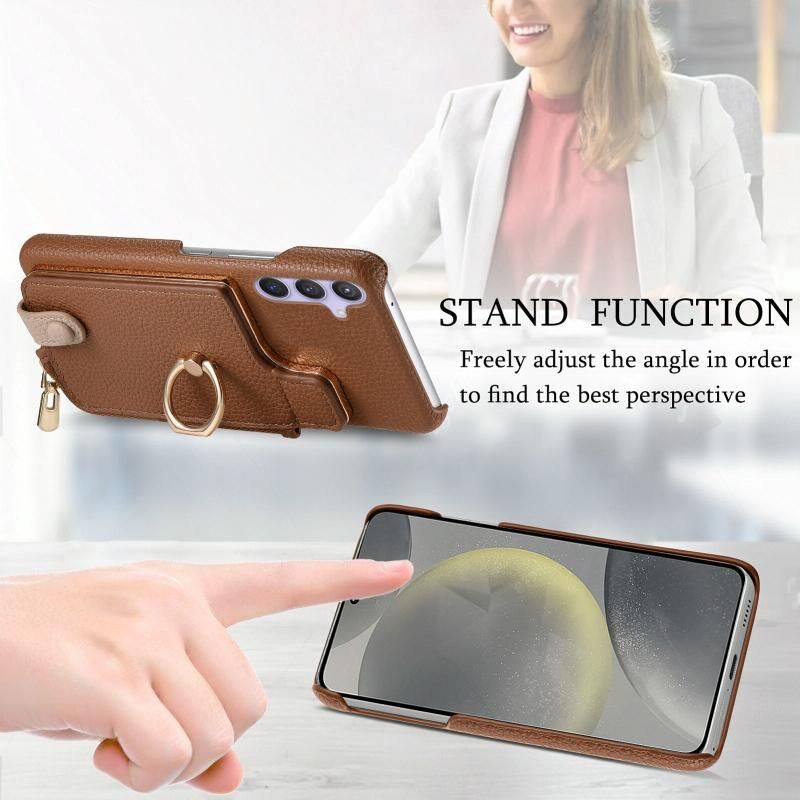Για Samsung Galaxy S24 5G Litchi δέρμα λάδι Edge δαχτυλίδι φερμουάρ πορτοφόλι πίσω θήκη τηλεφώνου (καφέ)