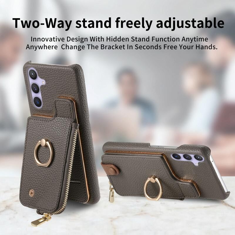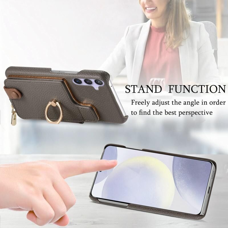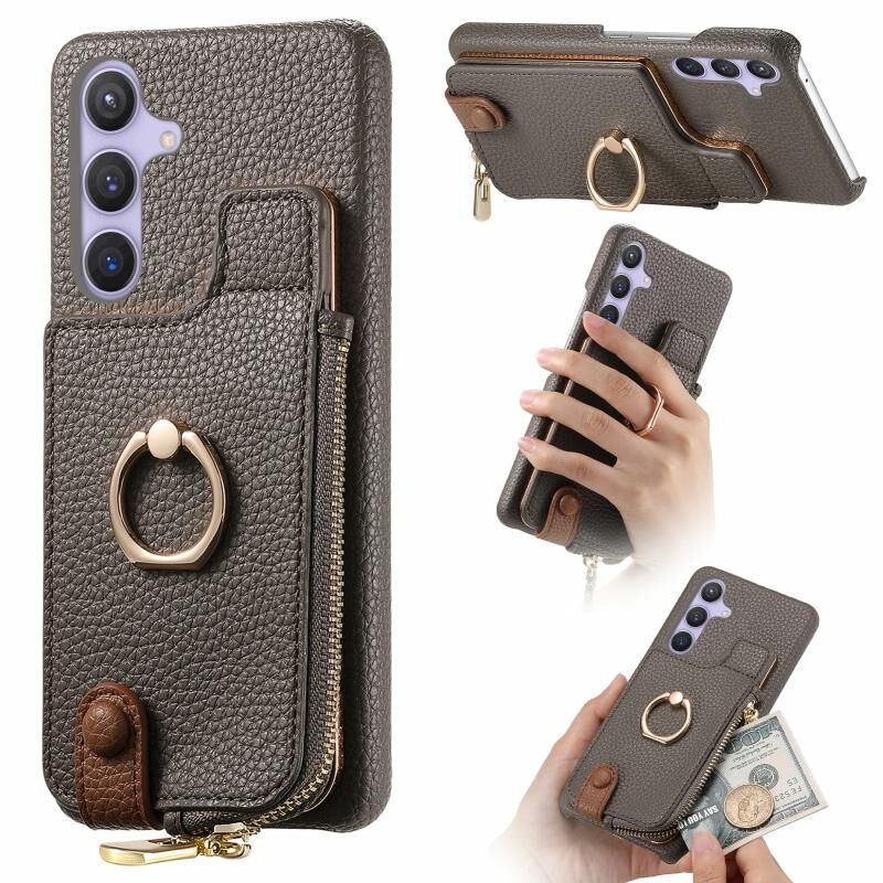Για Samsung Galaxy S24 + 5G Litchi δέρμα λάδι Edge δαχτυλίδι φερμουάρ πορτοφόλι πίσω υπόθεση τηλεφώνου (Γκρι)