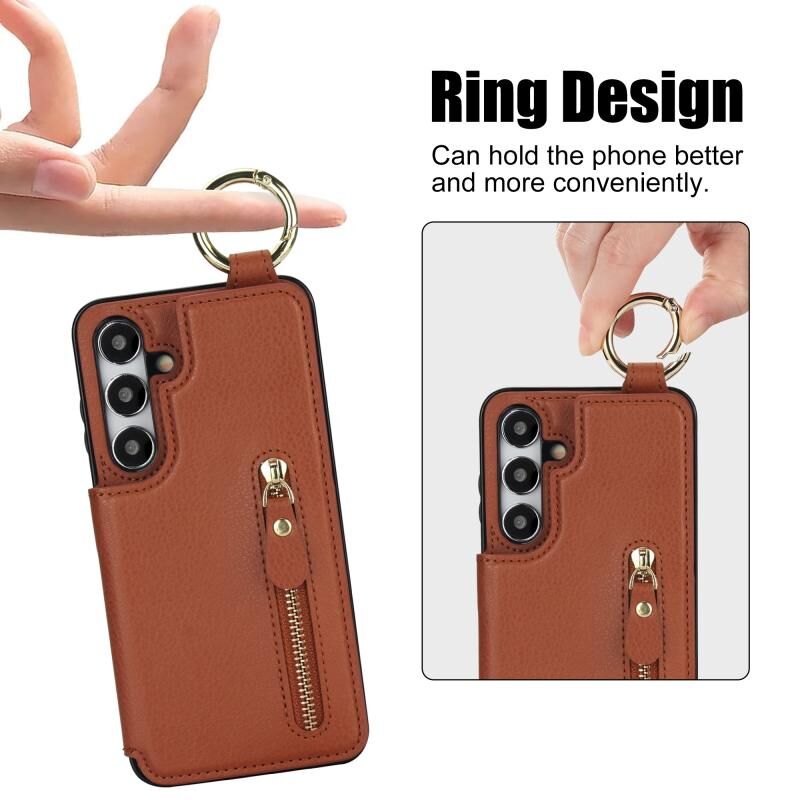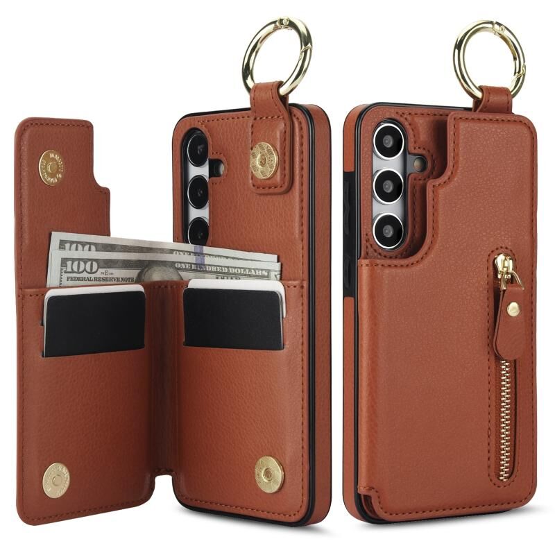 Για Samsung Galaxy S24 5G Litchi υφή φερμουάρ διπλή πόρπη κάρτα τσάντα υπόθεση τηλεφώνου (καφέ)