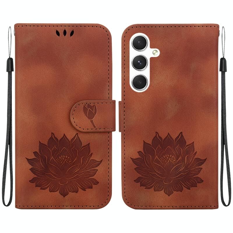 Για Samsung Galaxy S24 5G Lotus ανάγλυφη δερμάτινη θήκη τηλεφώνου (καφέ)
