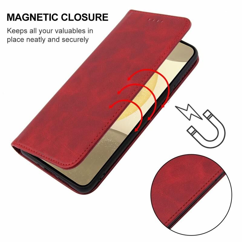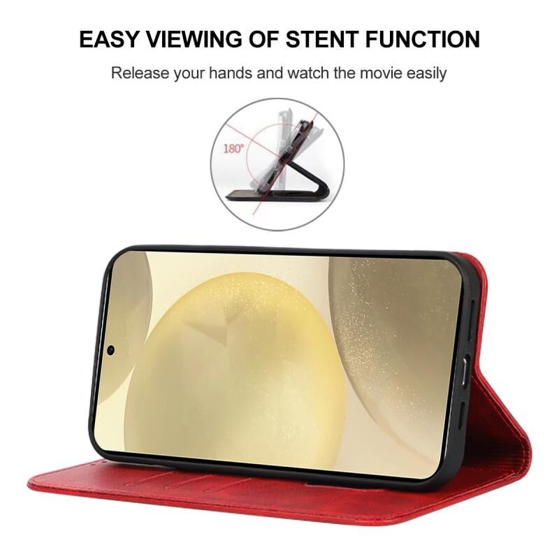 Για Samsung Galaxy S24 5G Μαγνητικό κλείσιμο δερμάτινη θήκη τηλεφώνου (κόκκινο)
