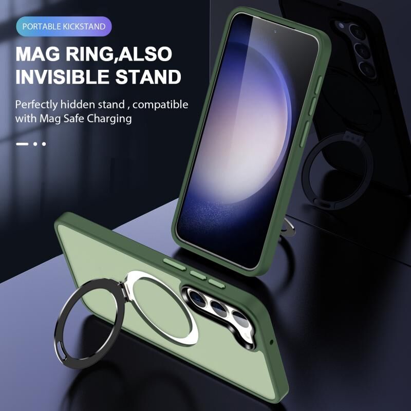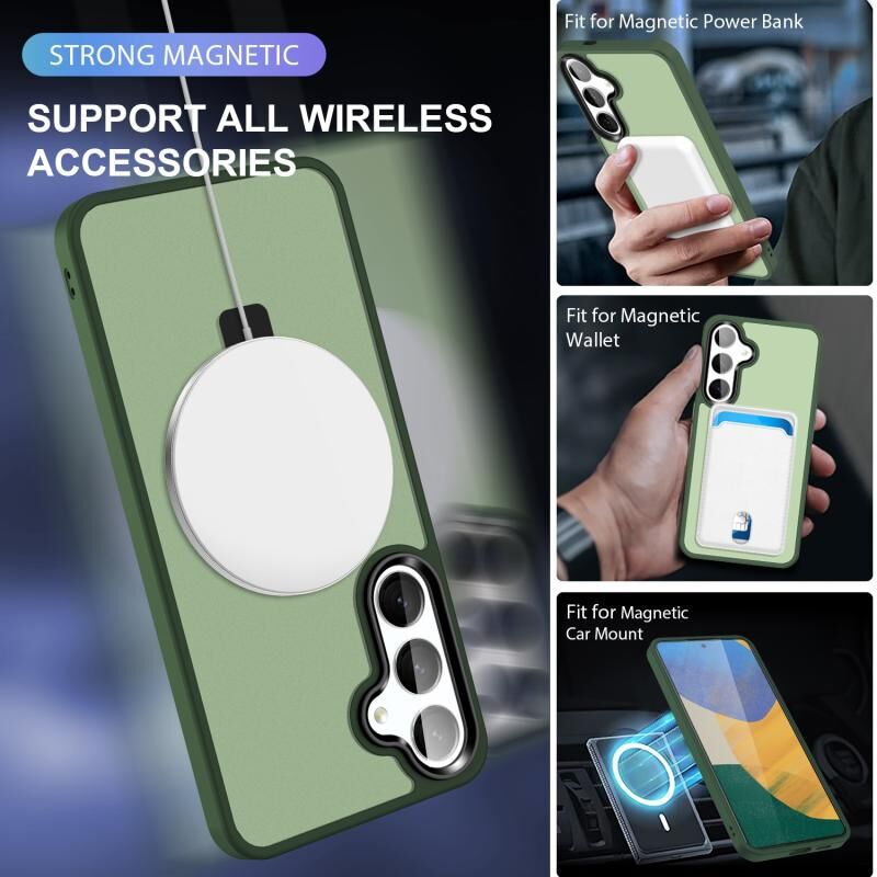 For Samsung Galaxy S24 5G MagSafe Holder Skin-feel PC Hybrid TPU Phone Case(Dark Green)