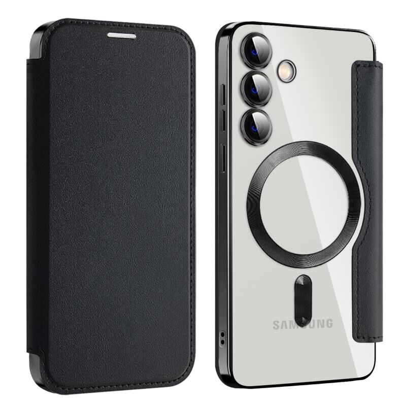 Θήκη τηλεφώνου δερμάτινη με μαγνητική σύνδεση MagSafe, αντι-κλοπής RFID για Samsung Galaxy S24+ 5G (Σκούρο Μωβ)