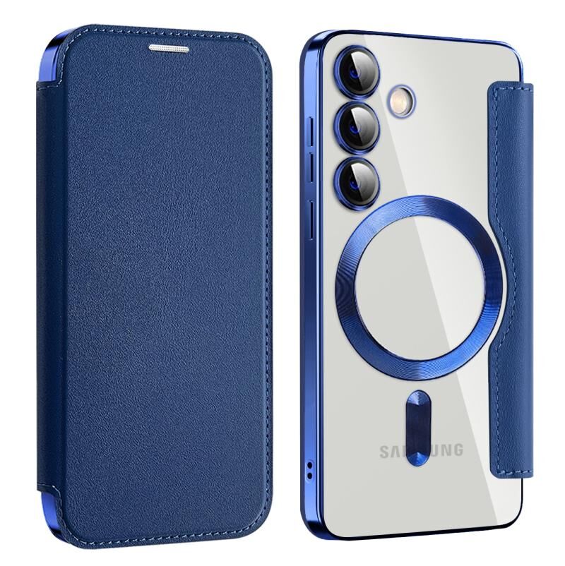Θήκη τηλεφώνου δερμάτινη με μαγνητική σύνδεση MagSafe, αντι-κλοπής RFID για Samsung Galaxy S24 5G (Βασιλικό Μπλε)