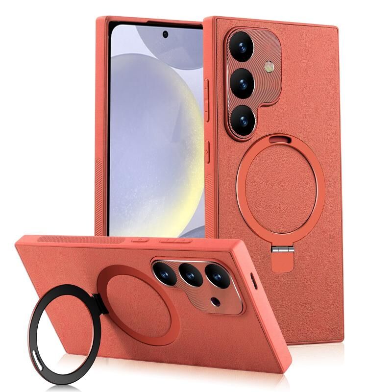 Θήκη τηλεφώνου για Samsung Galaxy S24 5G MagSafe Περιστρεφόμενη, PC + Δέρμα (Λευκό)