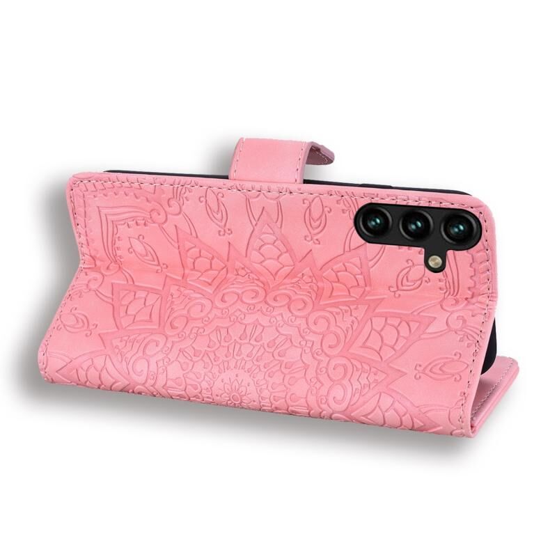 For Samsung Galaxy S24+ 5G Mandala Embossed Dual-Fold Calf Leather Phone Case(Pink)