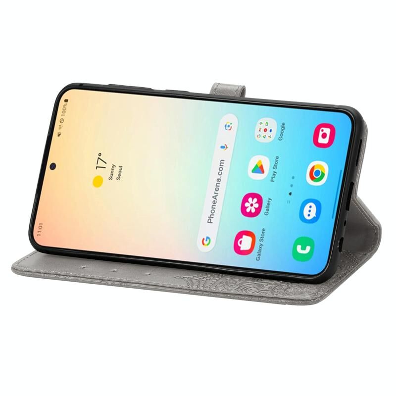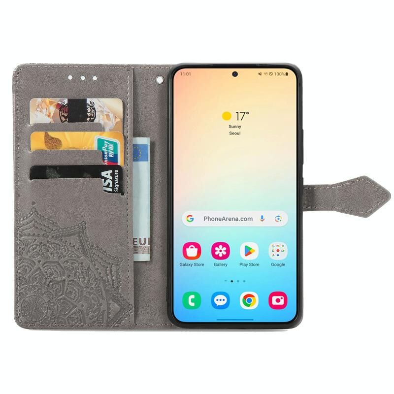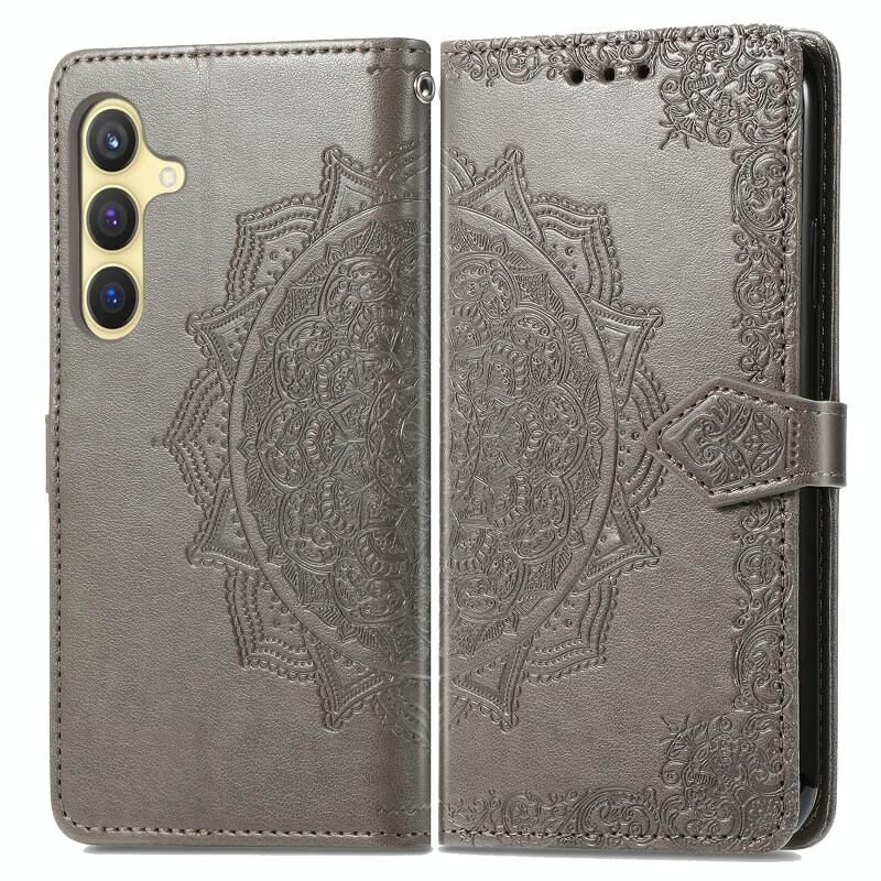 Για Samsung Galaxy S24 5G Mandala λουλούδι ανάγλυφο δερμάτινη θήκη τηλεφώνου (γκρι)