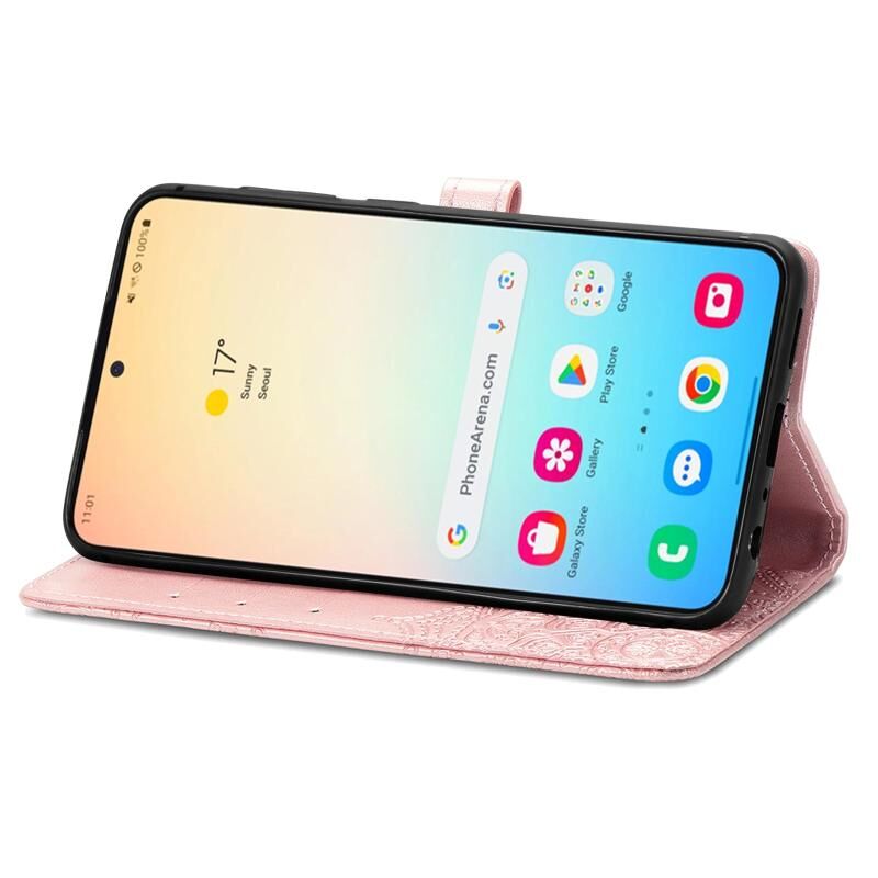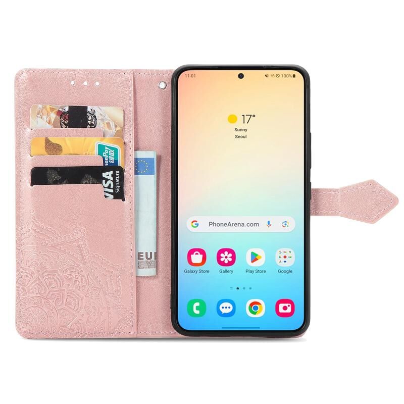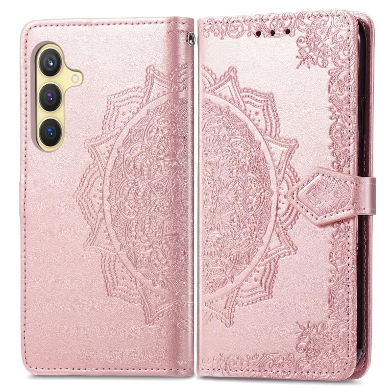 Για Samsung Galaxy S24 5G Mandala λουλούδι ανάγλυφο δερμάτινη θήκη τηλεφώνου (Rose Gold)
