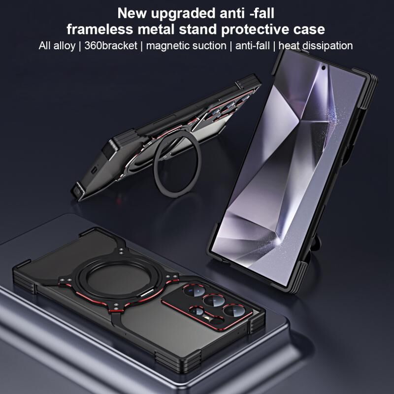 For Samsung Galaxy S24+ 5G Mechanical Arm Borderless MagSafe Holder Metal Phone Case(Purple Silver)
