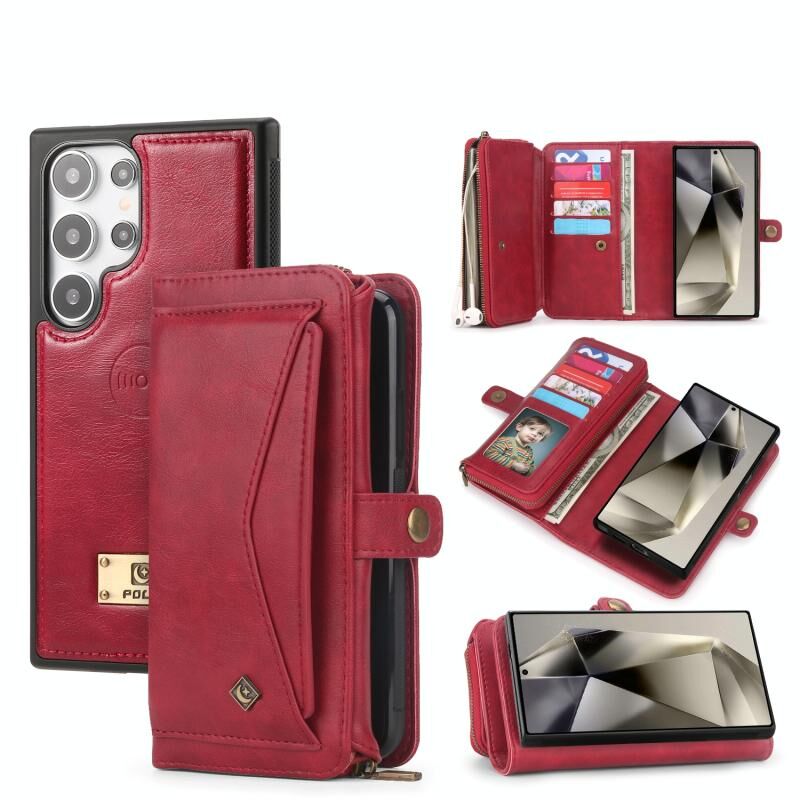 Για Samsung Galaxy S24 5G Πολυλειτουργικό φερμουάρ πορτοφόλι δερμάτινη θήκη τηλεφώνου (κόκκινο)