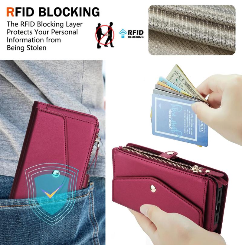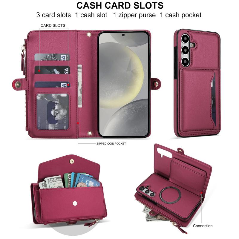 3. Πρακτική λειτουργία πορτοφολιού: Θήκες για κάρτες και διαμερίσματα για μετρητά μπορούν να αποθηκεύσουν τις πιστωτικές σας κάρτες, μετρητά ή μικρά χαρτονομίσματα που χρειάζεστε για καθημερινή χρήση.