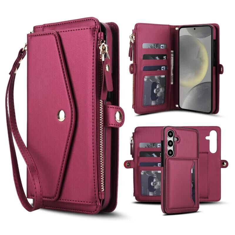 Για Samsung Galaxy S24 5G Δερμάτινη Θήκη Πορτοφόλι με Λουρί (Κόκκινο)
