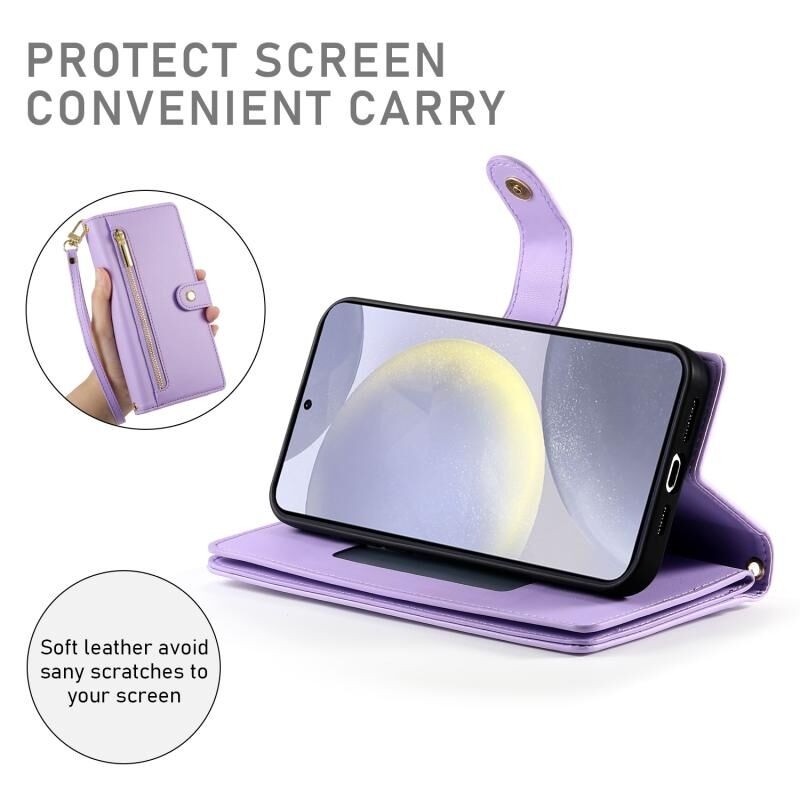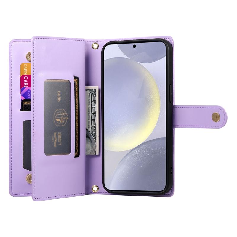 For Samsung Galaxy S24+ 5G Nine Card-slot Zipper Wallet Bag Leather Phone Case(Purple)