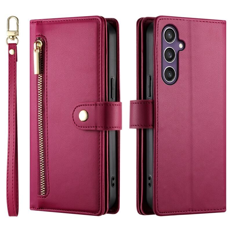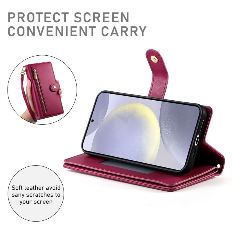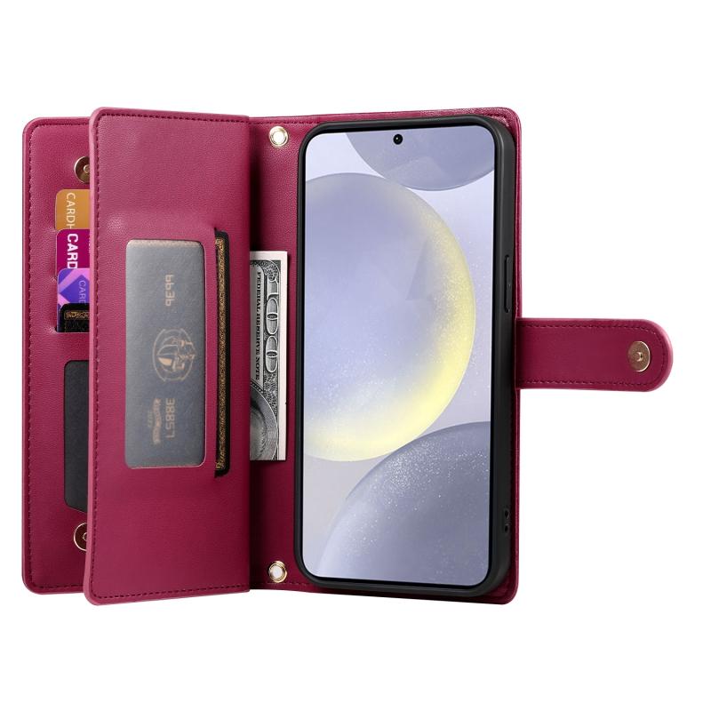 For Samsung Galaxy S24+ 5G Nine Card-slot Zipper Wallet Bag Leather Phone Case(Red)