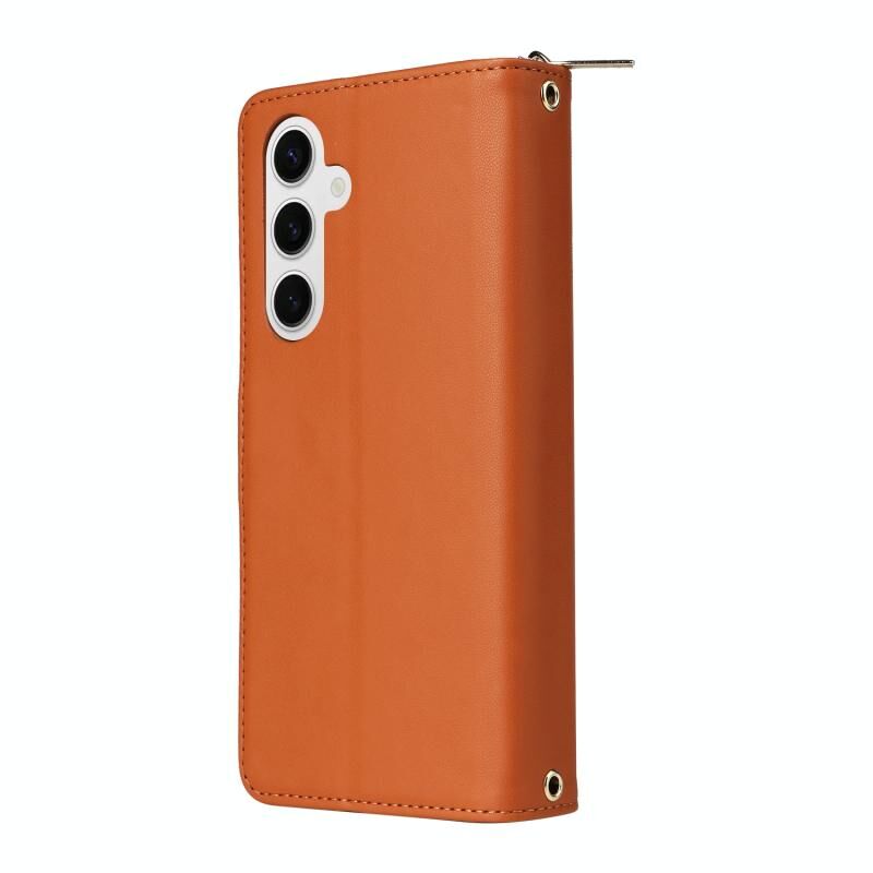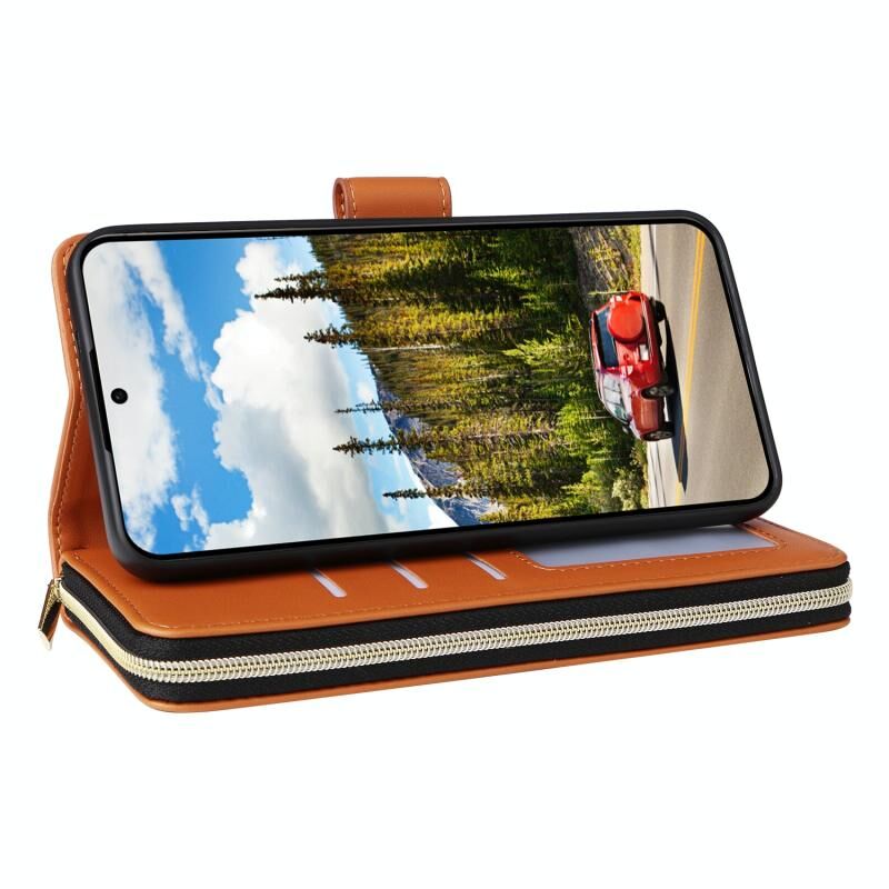 Για Samsung Galaxy S24 5G εννέα-κάρτα Slots φερμουάρ πορτοφόλι τσάντα δερμάτινη θήκη τηλεφώνου (καφέ)