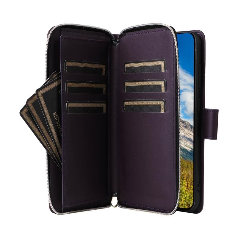 5. Πρακτική λειτουργία θήκης καρτών: Η υποδοχή κάρτας και η τσέπη πορτοφολιού με φερμουάρ και η θήκη μετρητών μπορούν να αποθηκεύσουν τις πιστωτικές σας κάρτες, τα μετρητά ή τα μικρά χαρτονομίσματα που χρειάζεστε καθημερινά.