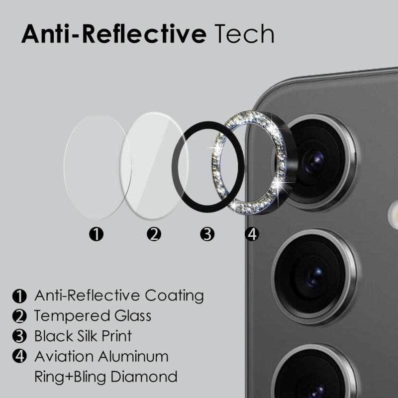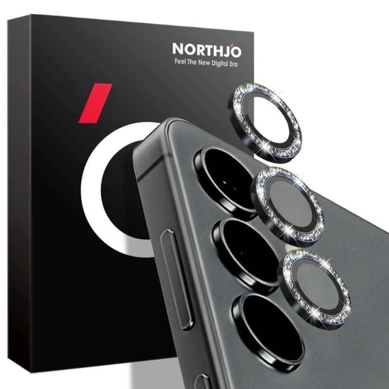 For Samsung Galaxy S24+ 5G NORTHJO Camera Lens Bling Glitter Metal Ring Tempered Glass Film(Black) (NORTHJO)