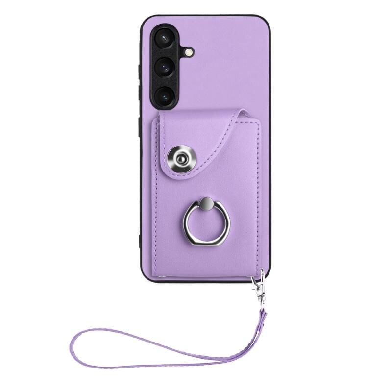 Για Samsung Galaxy S24+ 5G Οργανική κάρτα τσάντα τσάντα δαχτυλίδι κάτοχος PU υπόθεση τηλεφώνου με κορδόνι (μωβ)