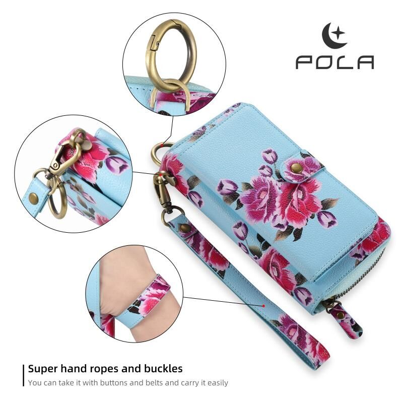 Θήκη τηλεφώνου Samsung Galaxy S24 5G POLA Flower, πολυλειτουργικό πορτοφόλι με φερμουάρ από δέρμα (Μαύρο)
