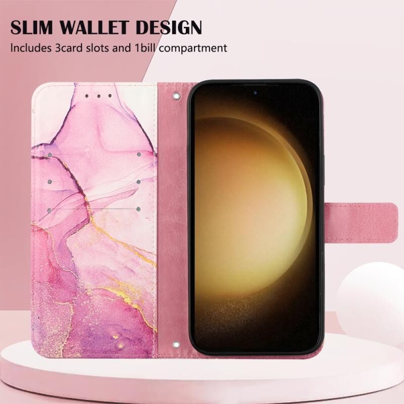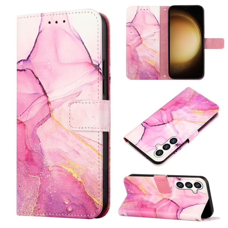 Θήκη τηλεφώνου Samsung Galaxy S24+ 5G PT003 με σχέδιο μάρμαρου, δερμάτινη, αναδιπλούμενη (Ροζ, Μωβ, Χρυσό)