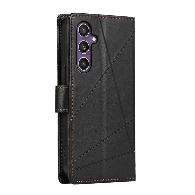 Θήκη τηλεφώνου Samsung Galaxy S24 5G από γνήσιο δέρμα PU με ανάγλυφη υφή και λεπτομέρειες γραμμής (Μπλε)