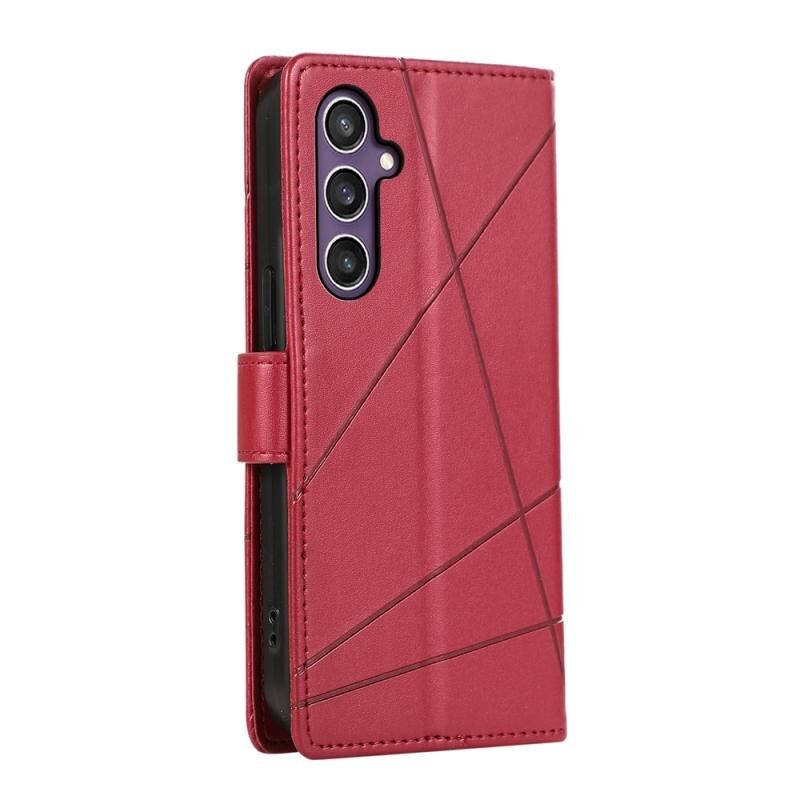 Θήκη τηλεφώνου Samsung Galaxy S24 5G από γνήσιο δέρμα PU με ανάγλυφη υφή και λεπτομέρειες γραμμής (Μπλε)