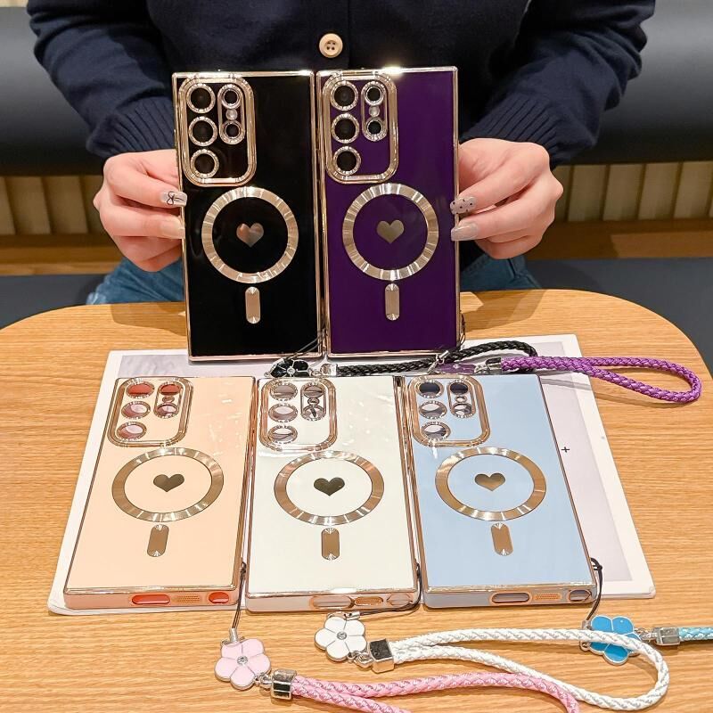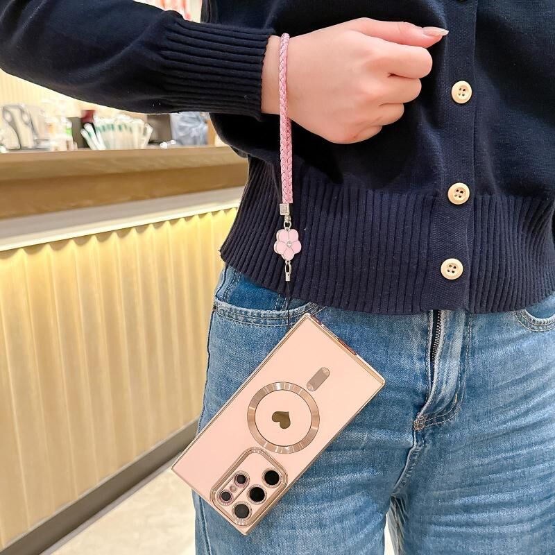 For Samsung Galaxy S24+ 5G Pupil Side Heart MagSafe Electroplating Phone Case with Lanyard(White)