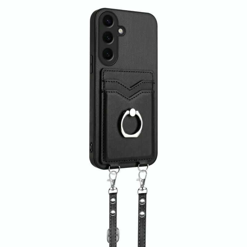 Για Samsung Galaxy S24 5G R20 Crossbody σχοινί δαχτυλίδι κάτοχος κάρτας υπόθεση τηλεφώνου (Μαύρο)