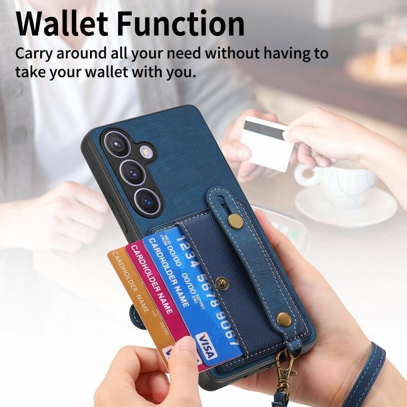 Για Samsung Galaxy S24 5G Ρετρό Σταυρός Wristband πορτοφόλι δέρμα πίσω τηλέφωνο υπόθεση (μπλε)